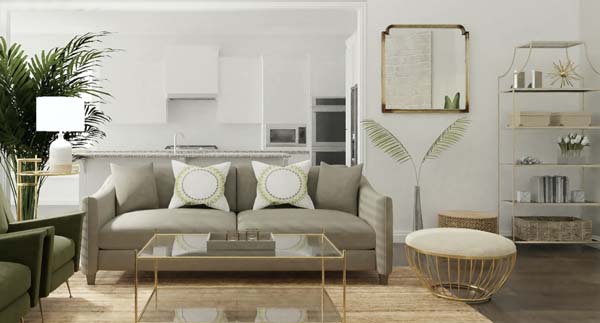 Ide ini menitik beratkan pada furnitur warna hangat supaya ide jelas pada interior dinding dan matahari tidak membuat ruang kelihatan pucat.