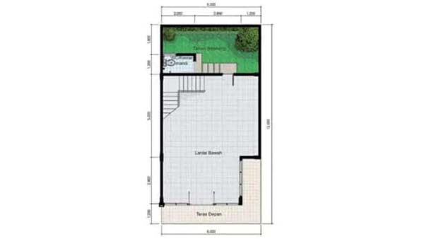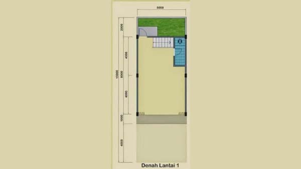- Denah Ruko 1 Lantai 5 x 10 dengan Taman Belakang