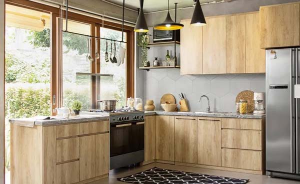 Tidak dapat disangkal jika jendela kayu memang soulmate untuk ruang dapur. Khususnya untuk tampil klop bersama rack cabinet dapur, jendela kayu akan berasa lebih afdal untuk keperluan setiap hari.