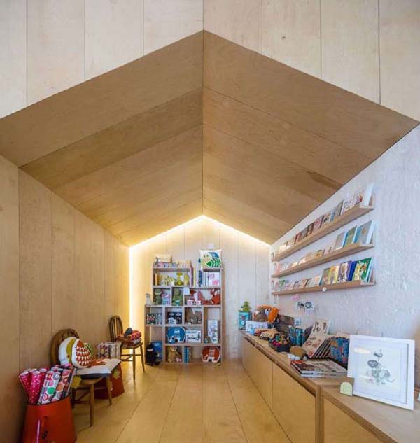 Inspirasi berikutnya  yaitu pola penertiban plafon  dengan material yang lumayan sering   di Indonesia, adalah triplek. Kalian mampu membuat  plafon  triplek dengan bentuk segitiga semacam di atas.