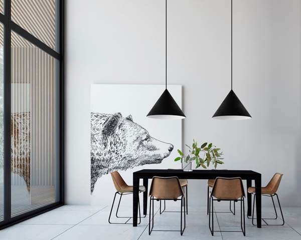 Kamu penyuka warna monokrom? Cobalah menggunakan desain ruang minimalis ini pada ruang makan. Penataan gaya ruang minimalis pada ruang makan sebaiknya di dekat jendela yang bersebelahan dengan taman belakang rumah supaya kamu bisa menikmati santapan dengan lebih rileks.