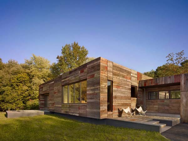 Memakai lanskap area pedalaman yang asri, sebagian dari rumah kayu minimalis ini pun desainnya dibuat terbuka. Bukaan ini berfungsi selaku ventilasi rumah jalan masuknya alami serta udara bersih pedesaan. Selain terdiri dari rumah utama, ada fasilitas rekreatif di luar rumah seperti kolam renang dan kebun pada rumah kayu ini.