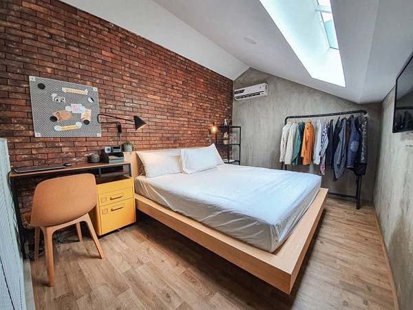 Kamar sederhana tetapi keren tersebut, sesuai untuk diterapkan untuk rumah sempit kekinian, cukup dengan menghadirkan tembok beton.